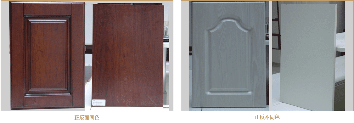| 某某包覆膜压门板正反面同色处理,开门打开以后,柜内柜门颜色一样美观。 | PK | 正反面不同色,背后都是用白色,开门打开的时候看到背面的颜色不美观。 |